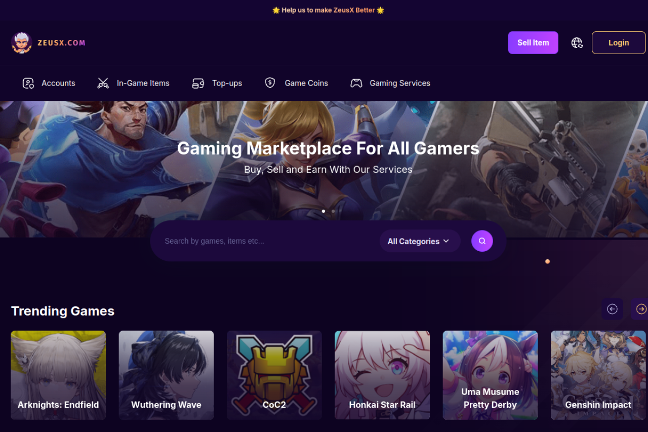 Want to play more & grind lesser? Buy & sell popular game accounts & items with ZeusX, a global marketplace for you to trade securely and hassle free. Join us!